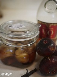 1)いちじくのヘタを取り、四つ切にして、バニラビーンズを縦半分に切り、中の種を取り出し、種とともにブランデーに漬け込む