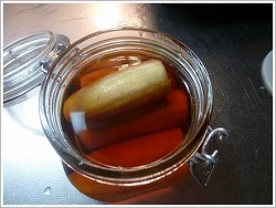 バナナは半分の長さに切り、密閉容器に入れて、その上からブランデーを注ぐ。