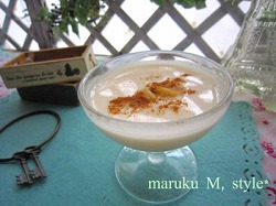 混ざれば、上から漬けた林檎を小さくカットして乗せて、シナモンをふります。